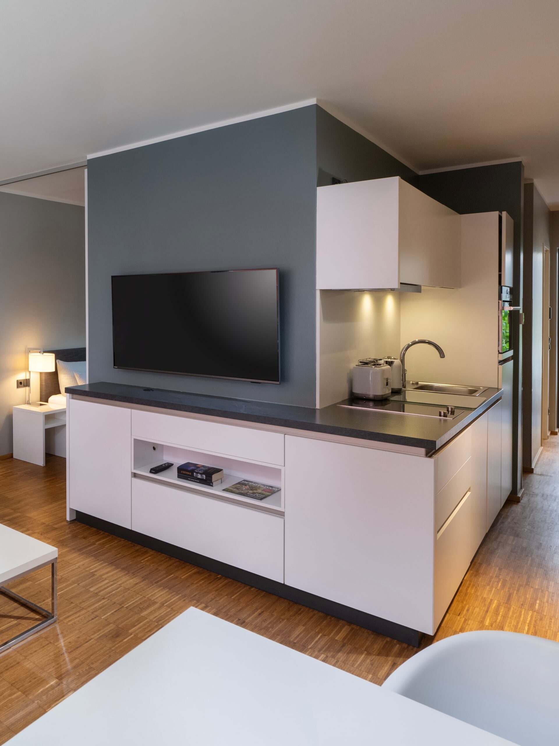 A long-term stay in a hotel offers flexibility, comfort, and complete cost control. At Wave Boarding in Potsdam, you enjoy the freedom of an apartment combined with the service of a hotel. Our serviced apartments feature a kitchen, living area, and bedroom, offering more space and privacy than traditional hotel rooms. Perfect for long-term rentals near Berlin or directly in Potsdam.