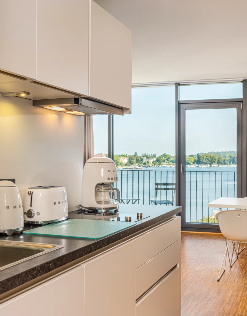 Erleben Sie das Wave Hotel Potsdam in Bildern – stilvolle Apartments, modernes Design und eine traumhafte Lage direkt am Tiefen See. Lassen Sie sich von der idyllischen Umgebung, der hochwertigen Ausstattung und der entspannten Atmosphäre inspirieren. Entdecken Sie Ihr perfektes Zuhause auf Zeit und freuen Sie sich auf Ihren Aufenthalt!