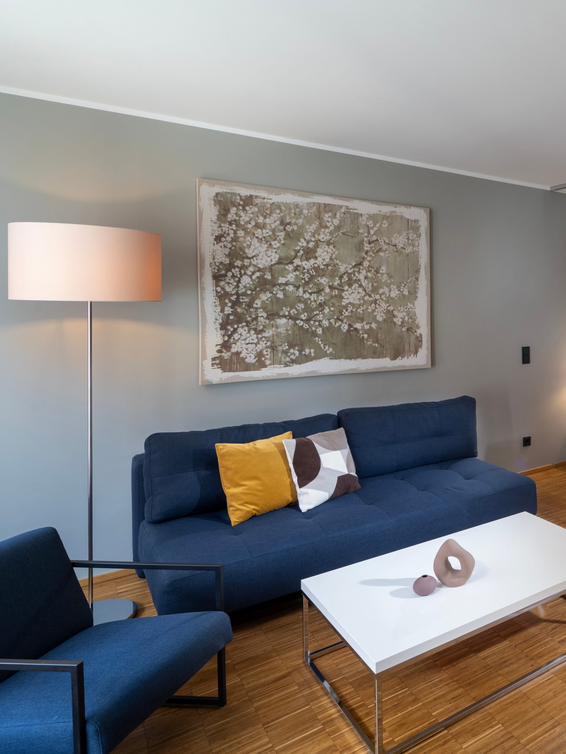 Unsere Standard Apartments, die sich zwischen dem ersten und dritten Stock befinden und eine Zimmergröße von 44 bis 58 m² bieten, gewähren einen eingeschränkten Blick auf den See vom Balkon aus und eignen sich bestens für Ihren Kurzurlaub in Potsdam.